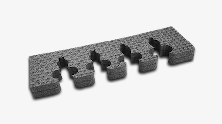 With this process we use a high pressure machine and sharp steel knives to cut out the product. We are capable of die cutting material up to 40mm (depending on the density).